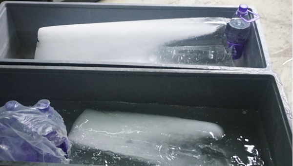為車間送“清涼”:公司黨支部、安委會(huì)協(xié)同工會(huì)每天在生產(chǎn)車間不同區(qū)域放置冰塊以降低溫度,為一線員工送去絲絲清涼。